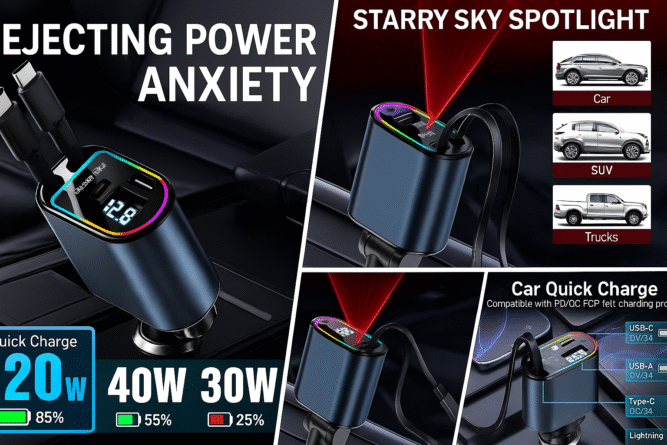 Looking for a reliable, stylish, and high-powered car charger? This retractable car charger 120W with starry light might just be your new favorite travel companion. And now, for a limited time, you can get 50% off through our exclusive Amazon link.